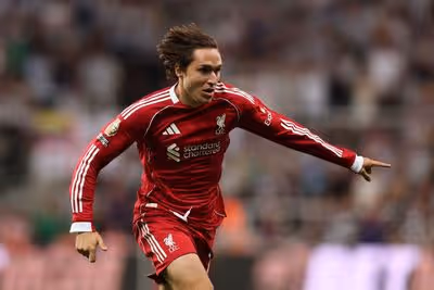 LIVERPOOL, ENGLAND – AUGUST 15: Federico Chiesa of Liverpool celebrates scoring his team’s third goal during the Premier League match between Liverpool and Bournemouth at Anfield on August 15, 2025 in Liverpool, England. (Photo by Michael Steele/Getty Images)